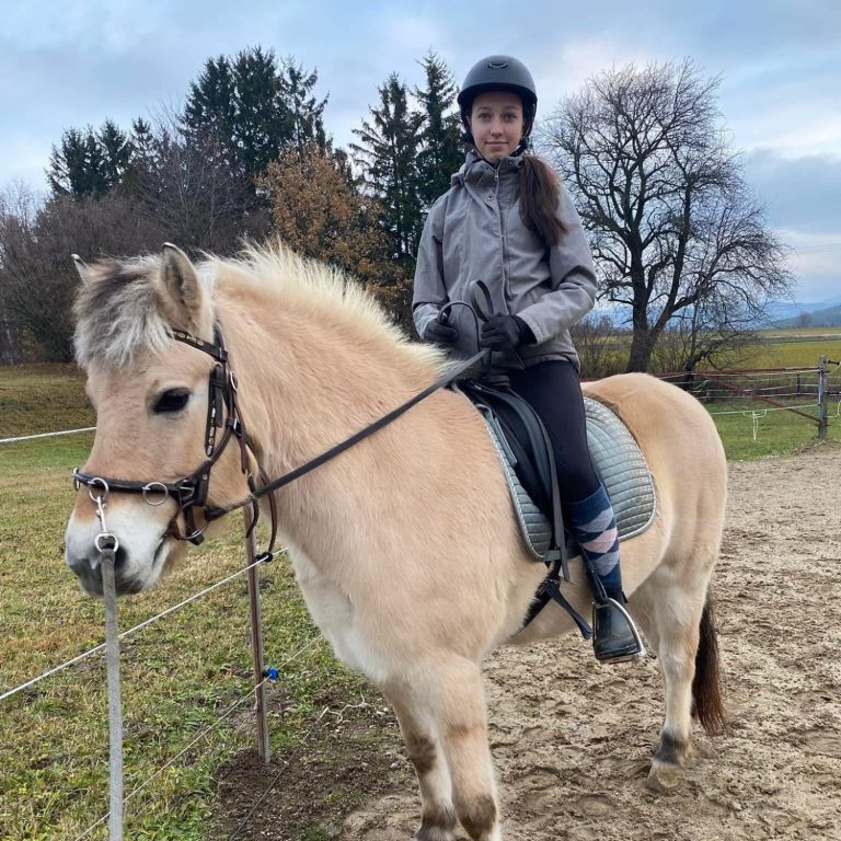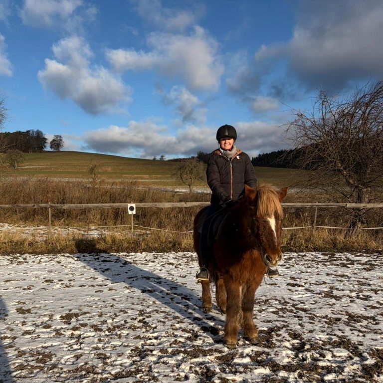 "Ich nehme bei Julia regelmäßig Reitstunden und habe zudem eine Pflegebeteiligung an einem ihrer Pferde, wo ich viel Bodenarbeit mache. Das fördert Vertrauen, Respekt und eine echte Partnerschaft mit dem Pferd. Besonders schätze ich die klare Ausrichtung des Stalls auf die klassische Reitkunst – so, wie sie ursprünglich gedacht war: pferdegerecht, fein und mit viel Gefühl."